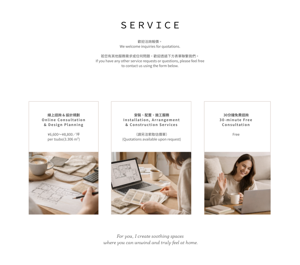 From design direction and furniture selection to full communication with vendors in Japanese,